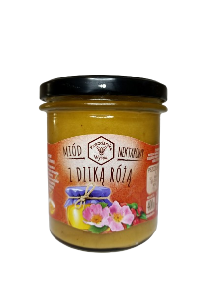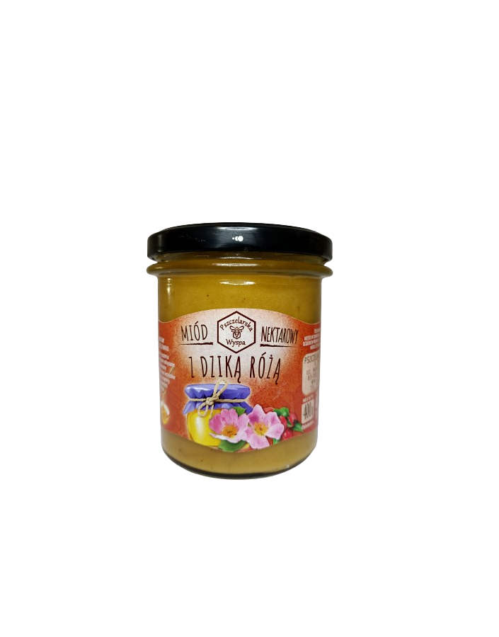 Miód kremowany z dziką różą to harmonijne połączenie 95% miodu wielokwiatowego oraz 5% liofilizowanej dzikiej róży – rośliny cenionej od pokoleń za swój wyjątkowy smak i bogactwo składników odżywczych. Proces kremowania nadaje miodowi aksamitną konsystencję, dzięki czemu idealnie się rozsmarowuje, a subtelna kwaskowatość dzikiej róży przełamuje jego naturalną słodycz, tworząc unikalną kompozycję smakową.