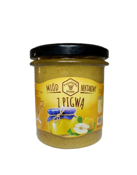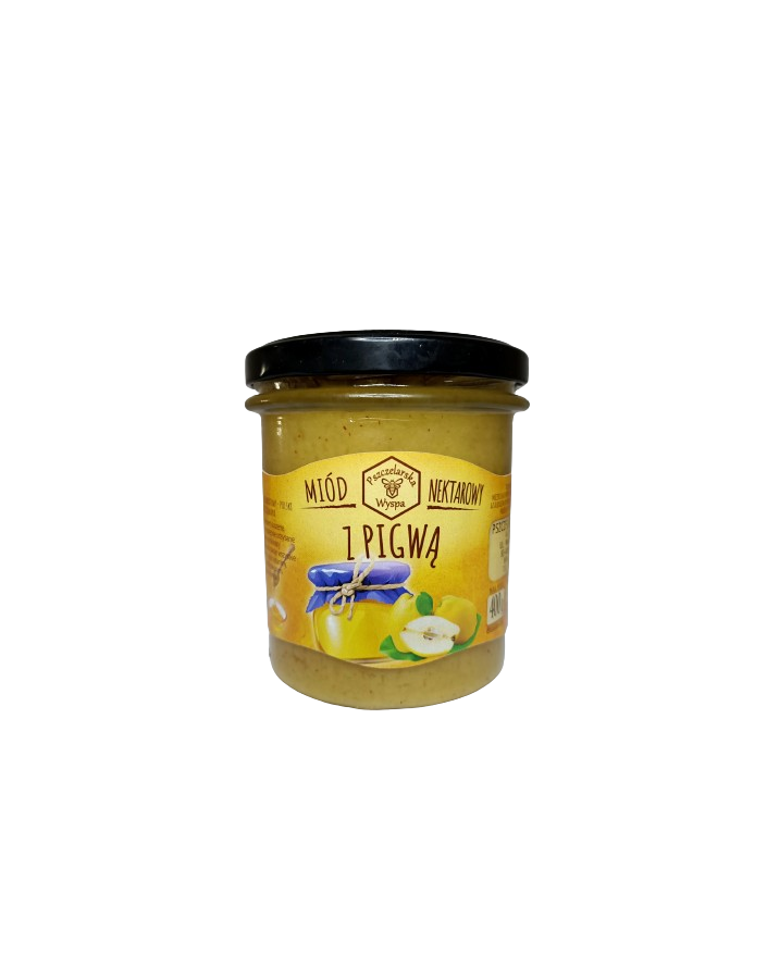Starannie wyselekcjonowany miód wielokwiatowy, poddany procesowi kremowania, zyskuje aksamitną, łatwą do rozsmarowania konsystencję, a dodatek owocowej pigwy wnosi przyjemną, lekko kwaskową nutę smakową.